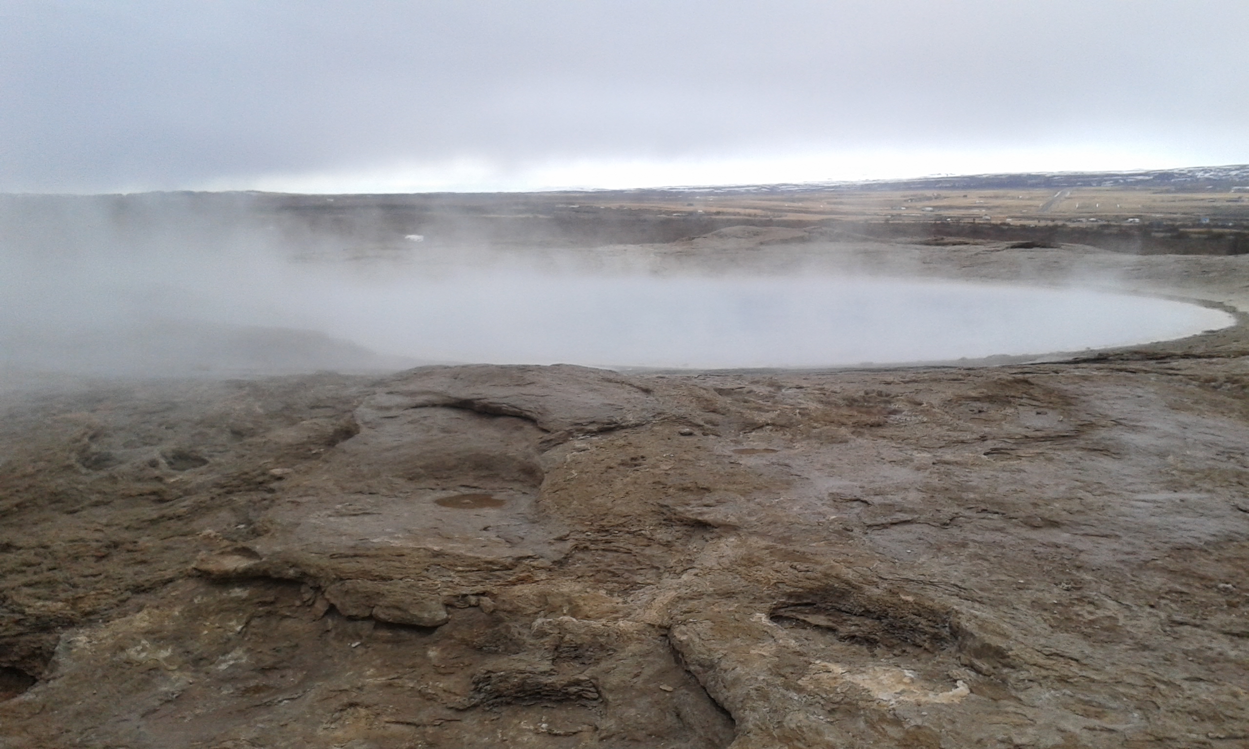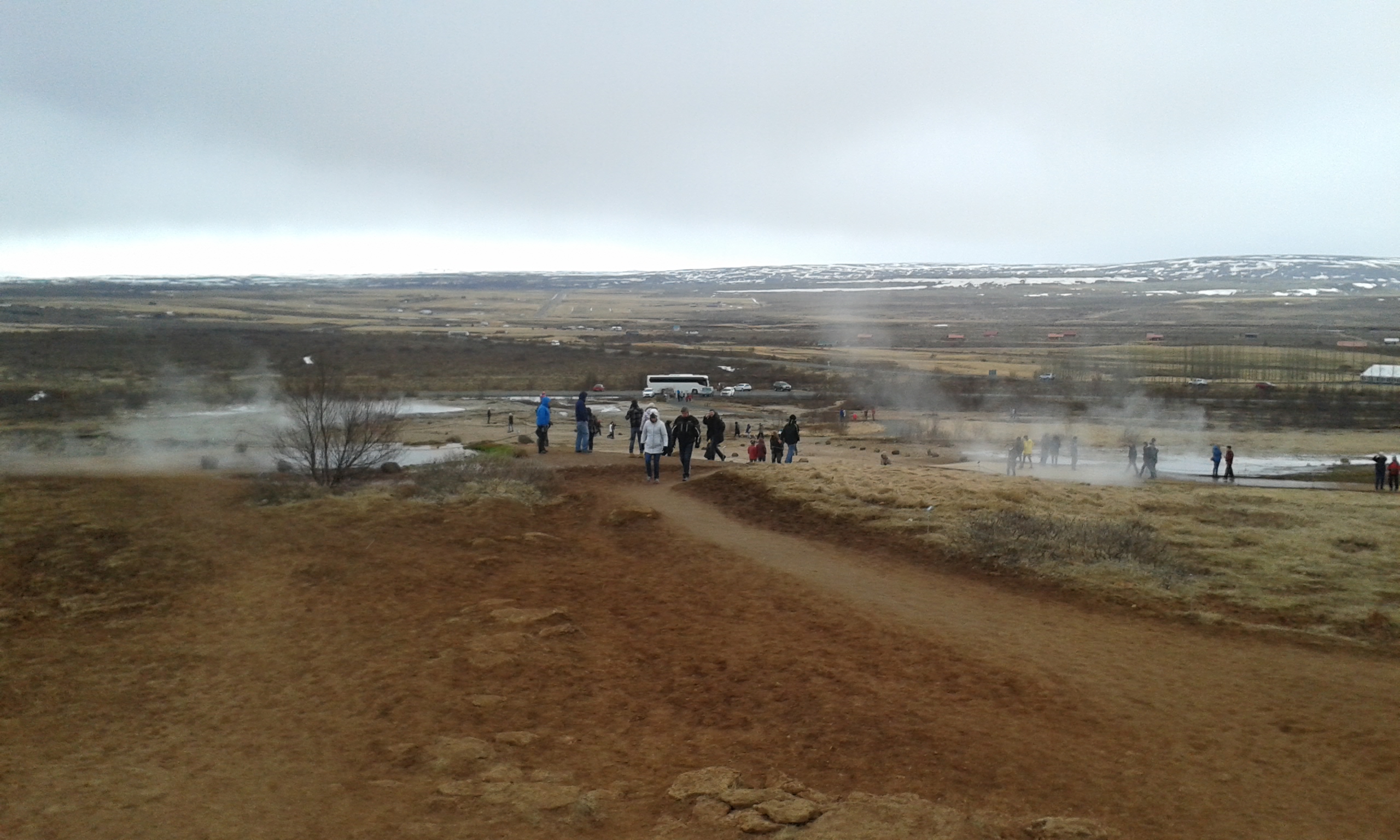 De la distanță, păreau niste bălți amărâte, de-a lungul unui povârniș noroios (coasta dealului Laugarfjall, un mic dom vulcanic). Ghidul ne-a dat liber să explorăm, fiecare în legea lui, tot timp de 45 minute, dar ne-a avertizat să avem grijă să nu ne depărtăm de potecile și traseele marcate, pentru că exista riscul ca solul să nu fie stabil, să se prăbușească sub noi, să cădem într-un izvor fierbinte și să ne opărim… Nu-i de glumă cu Islanda! O fi ea ea mai sigură țară din lume (în ce privește infracționalitatea), dar are o natură teribilă, pe care nu prea e bine să o iei în zeflemea.