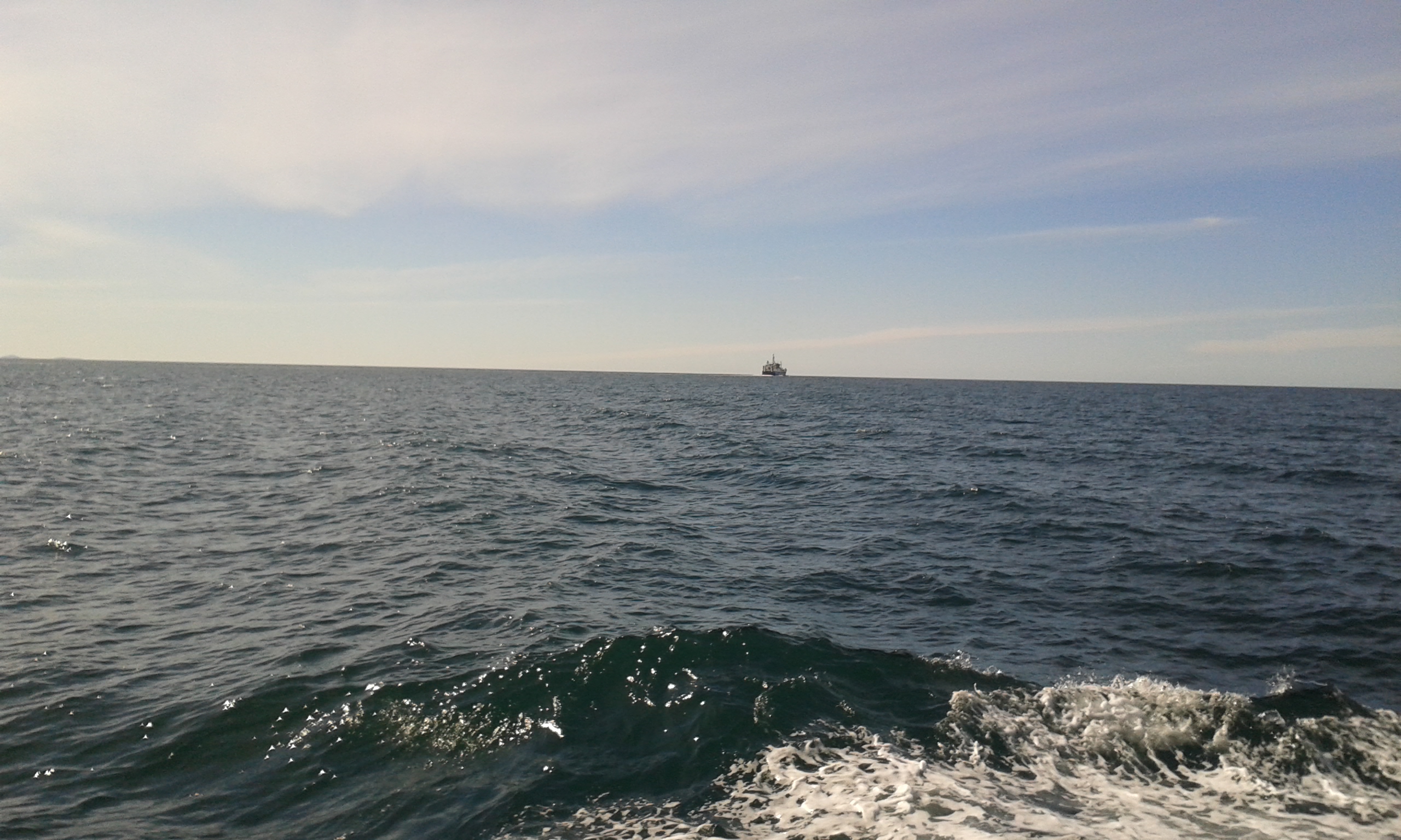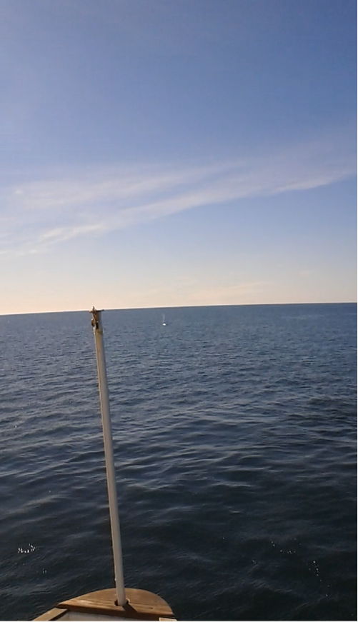 Mai mult am văzut jetul de apă lansat de balenă (și un pic din partea ei dorsală), decât balena în sine. Dar mi-a plăcut! Doar nu în fiecare zi am ocazia să dau nas în nas cu o balenă, în mediul ei natural. Ne-am intersectat, pentru scurt timp, cu un uriaș blând, dintr-o lume marină, diferită de a noastră. Arăta straniu, ca o ditamai fântână arteziană, țâșnind în miezul oceanului.