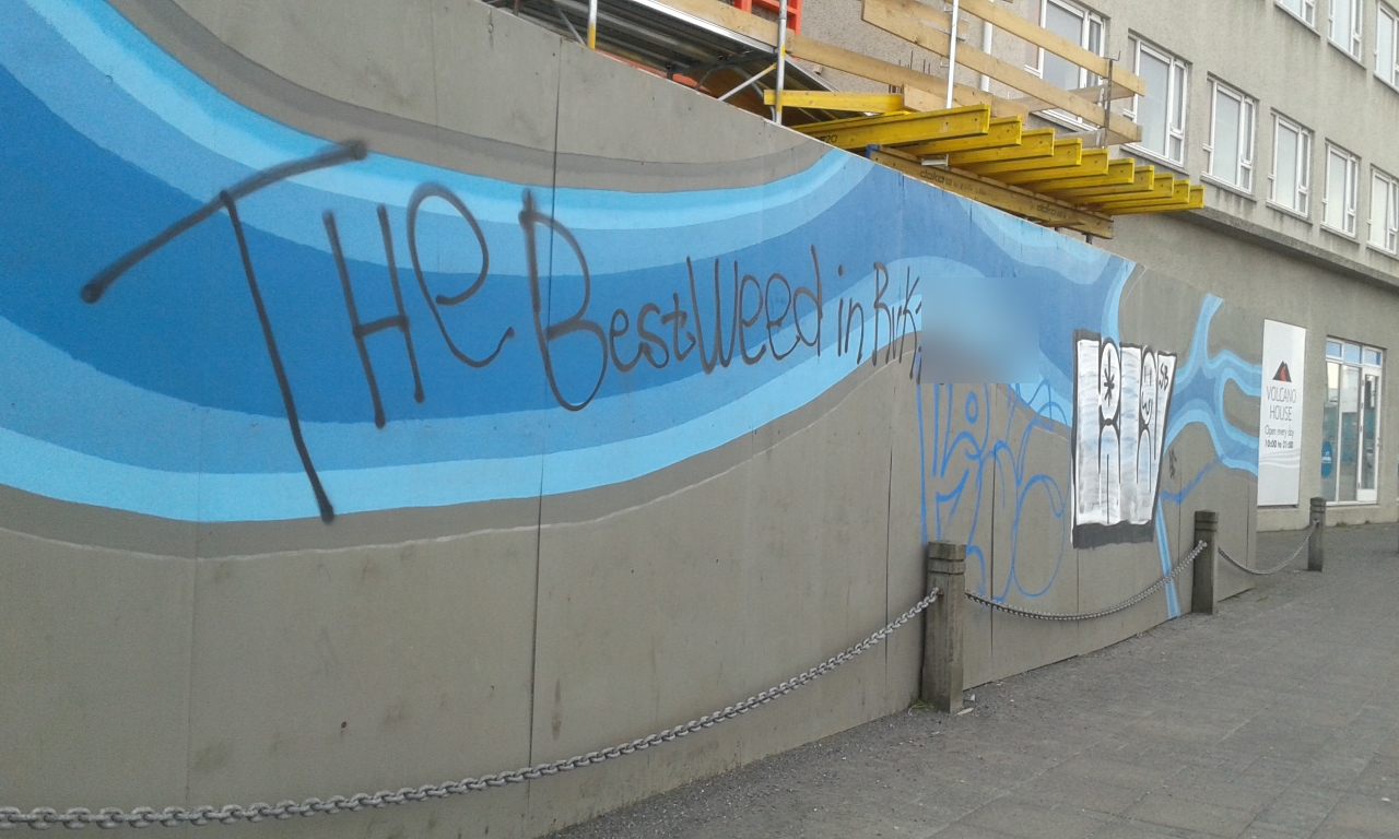 După ce am debarcat, ne-am amuzat să descoperim, în port, un grafitti imens, plasat, foarte vizibil, pe zidul unei clădiri: The Best Weed in RvK (prescurtare pentru Reykjavík)… urmat de numărul de telefon al dealer-ului! Așa reclamă, pe față, la un drog nu am mai pomenit. Asta, în condițiile în care iarba e ilegală în Islanda… Atitudinea generală, totuși, este relaxată, în această privință: am mai zărit persoane rulându-și câte un joint, în public, fără să se ferească, și mirosea a marijuana atât de tare, într-o seară, în Lækjartorg (una din piețele centrale din Reykjavík), încât, după aceea, nu am fost sigură dacă nu cumva mă amețisem și eu – contact high – de la fumul lor de mâna a doua. Poate m-am autosugestionat, dar mi s-au părut, în seara aceea, suspect de frumoase și căsuțele nordice, și Hallgrímskirkja, până și decorațiunile din vitrinele gift shop-urilor mi se păreau de o estetică desăvârșită, psihedelică, parcă eram într-un vis… În caz că vă întrebați dacă am sunat la acel număr: evident, nu! Nu doar pentru că nu fumez iarbă (și nu fumam nici pe atunci), dar, și dacă aș fi fumat, tot nu mi s-ar fi părut o idee bună să risc să am probleme cu legea, într-o țară străină. Așa că, în afara dubiosului moment de posibilă amețeală involuntară din Lækjartorg, nu am ce întâmplări psihedelice să vă povestesc din această călătorie.