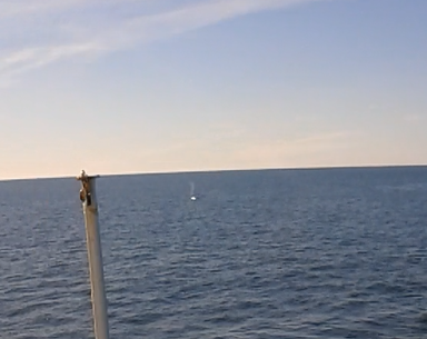 Ghidul ne-a spus să fim pe fază, pentru că, din clipă în clipă, puteam să ne așteptăm să ne iasă în cale o balenă. Ajunsesem pe teritoriul frecventat de ele. Nu eram singurii. Un alt vaporaș de whale watching se învârtea și el pe acolo, tot în căutare de cetacee… Au trecut vreo 10-15 minute și nu s-a întâmplat nimic; începusem să mă plictisesc. Soarele urcase foarte sus pe boltă și ne cam bătea în cap; în plus, pe alocuri, strălucea așa de tare, oglindit în valuri, de ne lua ochii, în timp ce noi ne holbam în apă, doar, doar om zări ceva…