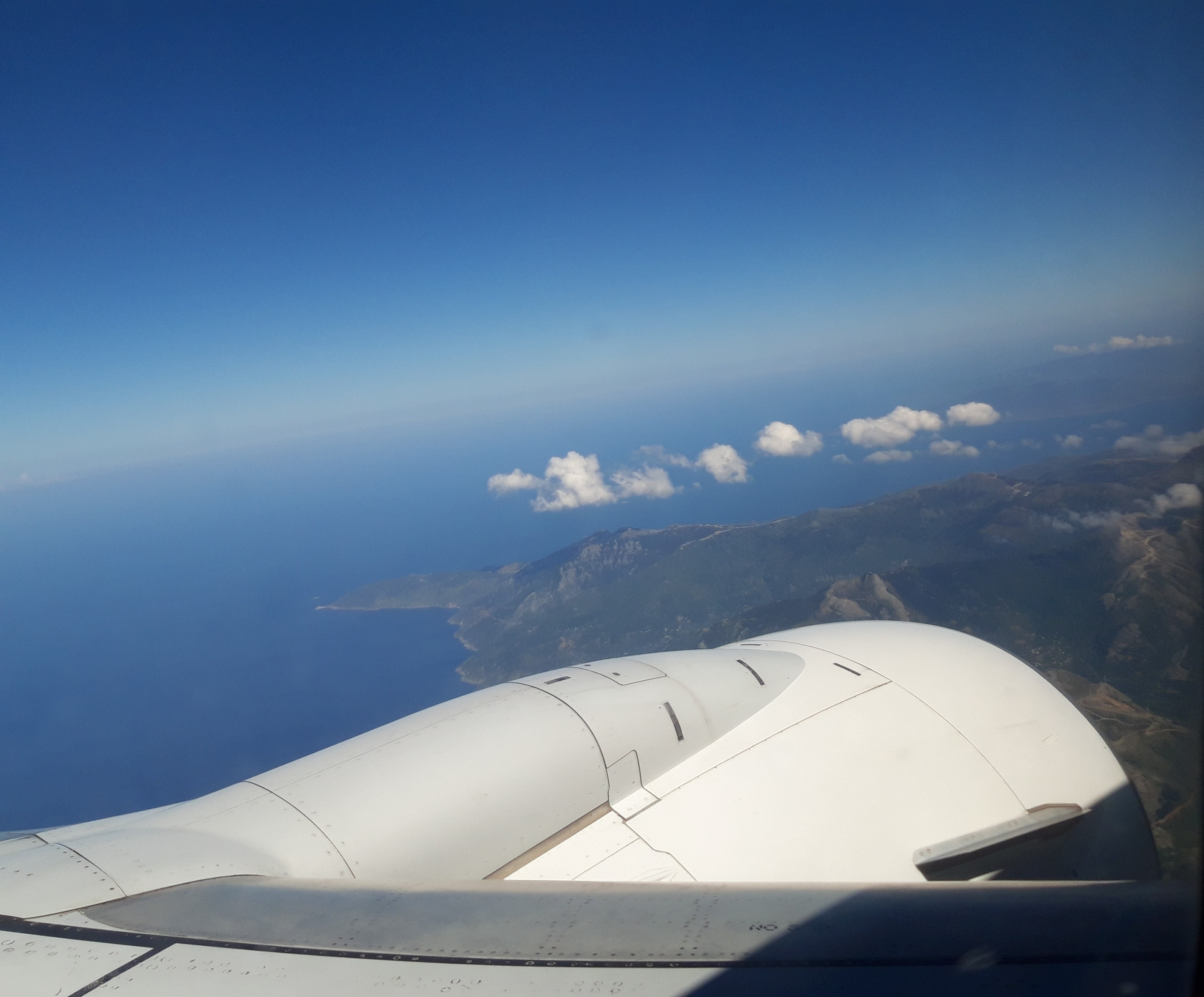 Am deschis ochii asupra unui peisaj de poveste, cu insulițe și peninsule muntoase, înconjurate de un albastru incredibil, cel al Mării Egee. Începuse deja coborârea (căci zborul până la Atena e foarte scurt, cam o oră și 15 minute) și avionul făcea tot soiul de viraje complicate; pluteam printre munți stâncoși, cu forme colțuroase, și, cu fiecare manevră care înclina aeronava, alte și alte și priveliști ni se arătau: un relief arid (dar nu lipsit de poezie), numai ocru și verde uscat… Pe meleagurile acestea, deci, și-au făcut veacul și și-au trăit dramele zeii și eroii din miturile străvechi, care mi-au încântat copilăria. Survolam vreo 2500 ani de istorie și cultură.