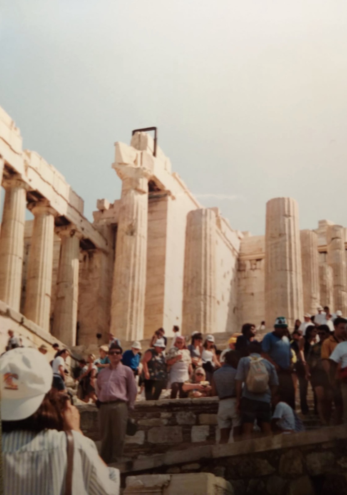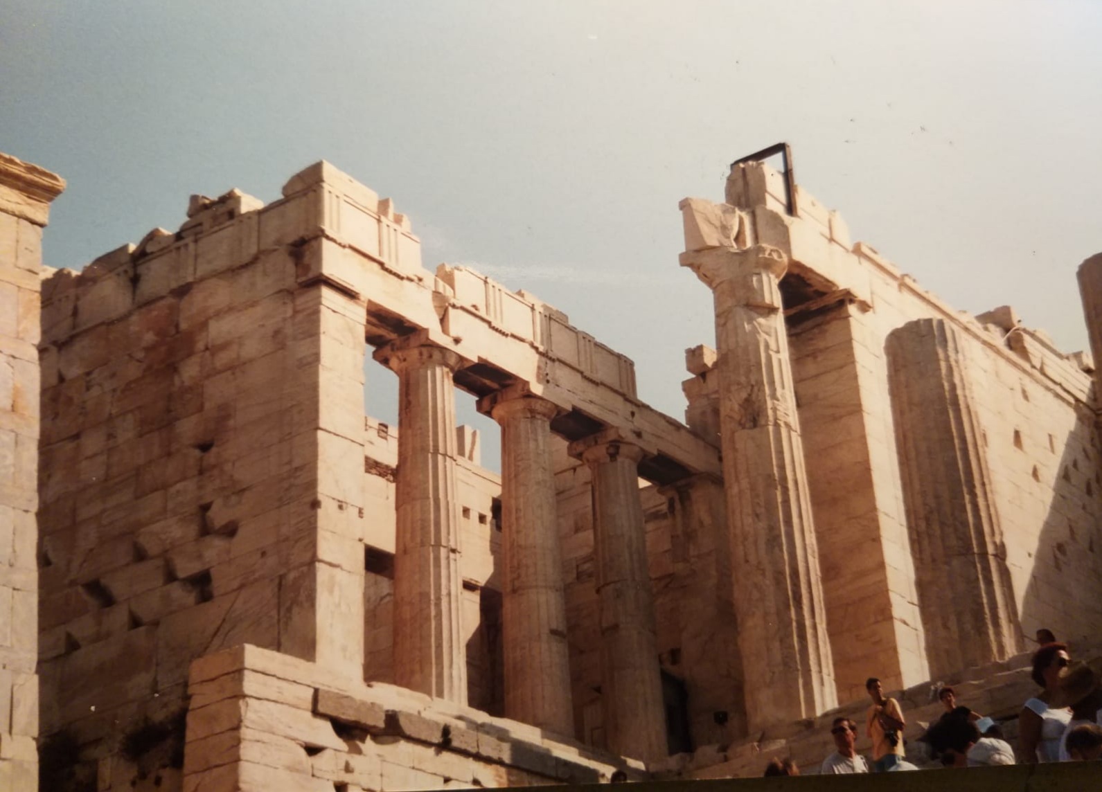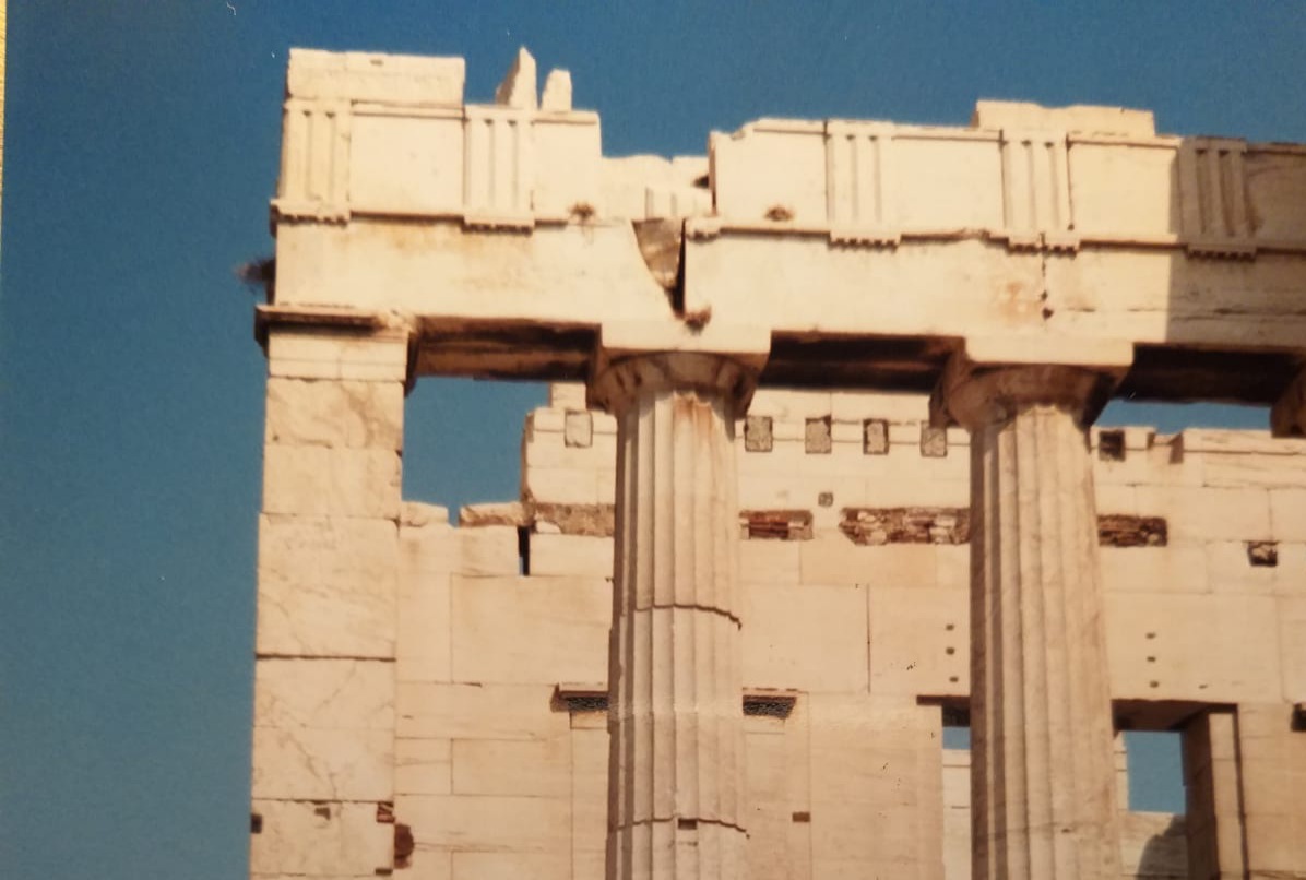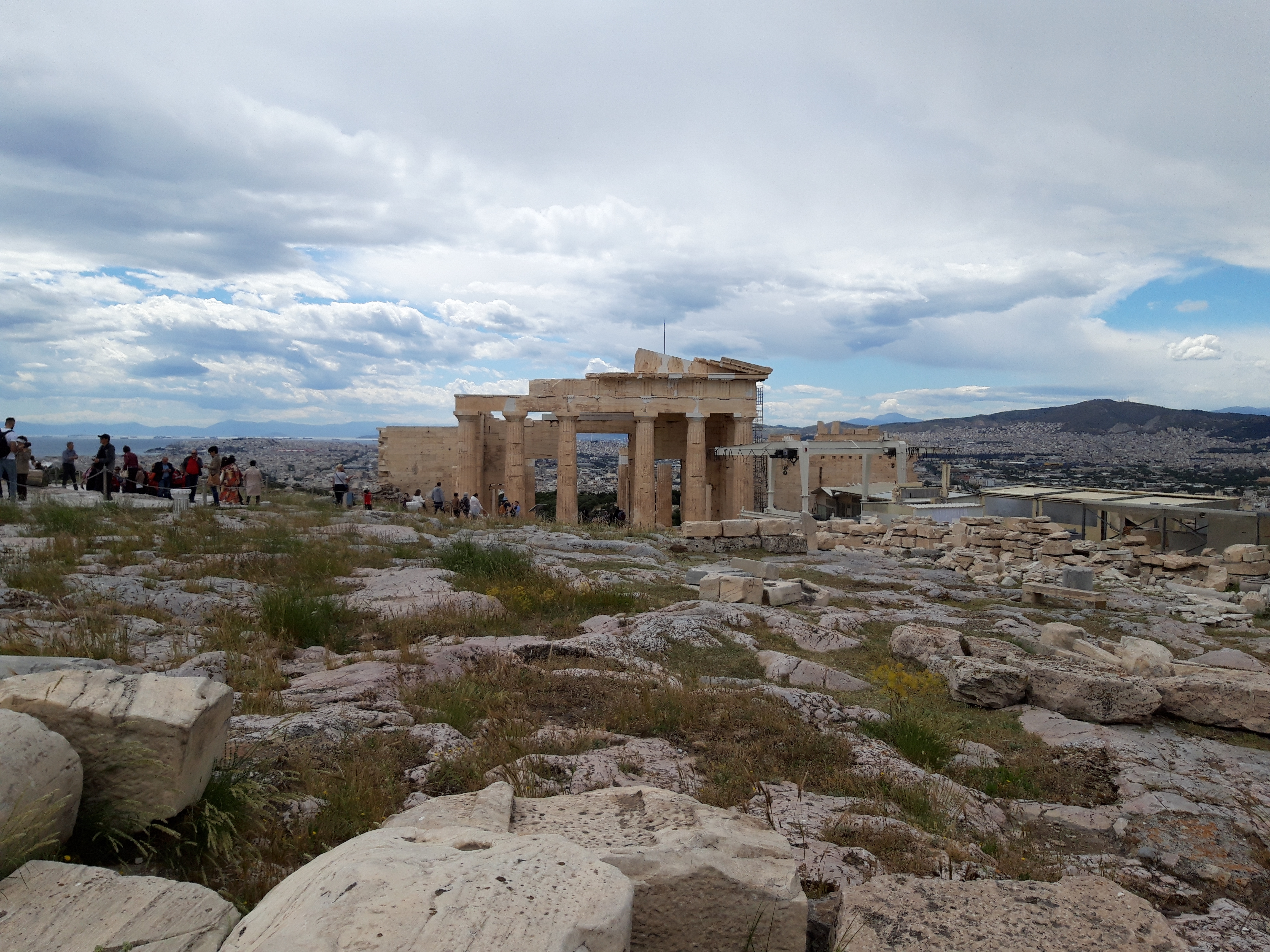 În sfârșit, iată-ne pe Acropole. Cred că este cel mai frumos loc cu ruine antice din lume! Ajunși acolo, am avut senzația că ne-am întors în timp și am plonjat într-o simfonie de alb și albastru, numai marmură și cer. Câmpul vizual era dominat de Propilee (porticul care marca intrarea) și de siluetele a două temple, Parthenonul și Erehteionul, în preajma cărora se înălțau, în vechime, multe alte sanctuare, dar și o colosală statuie a zeiței Atena (astăzi, pierdută).