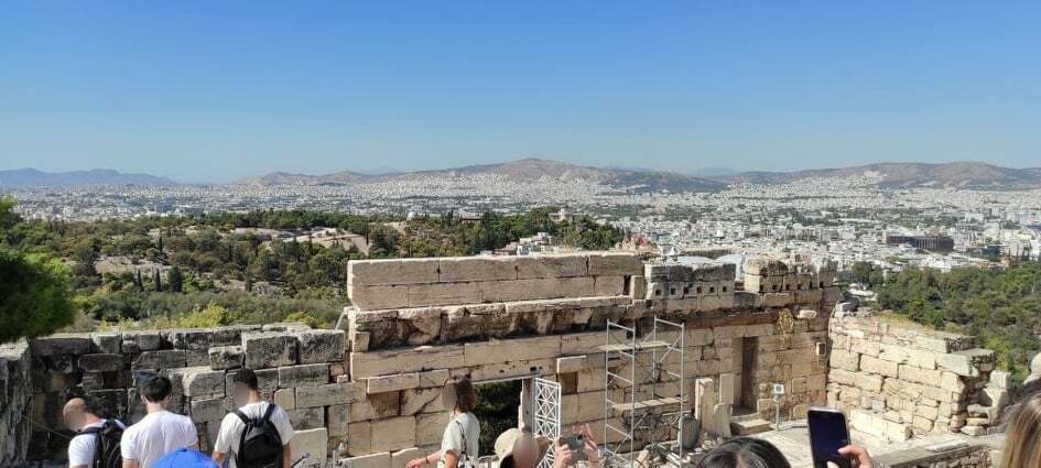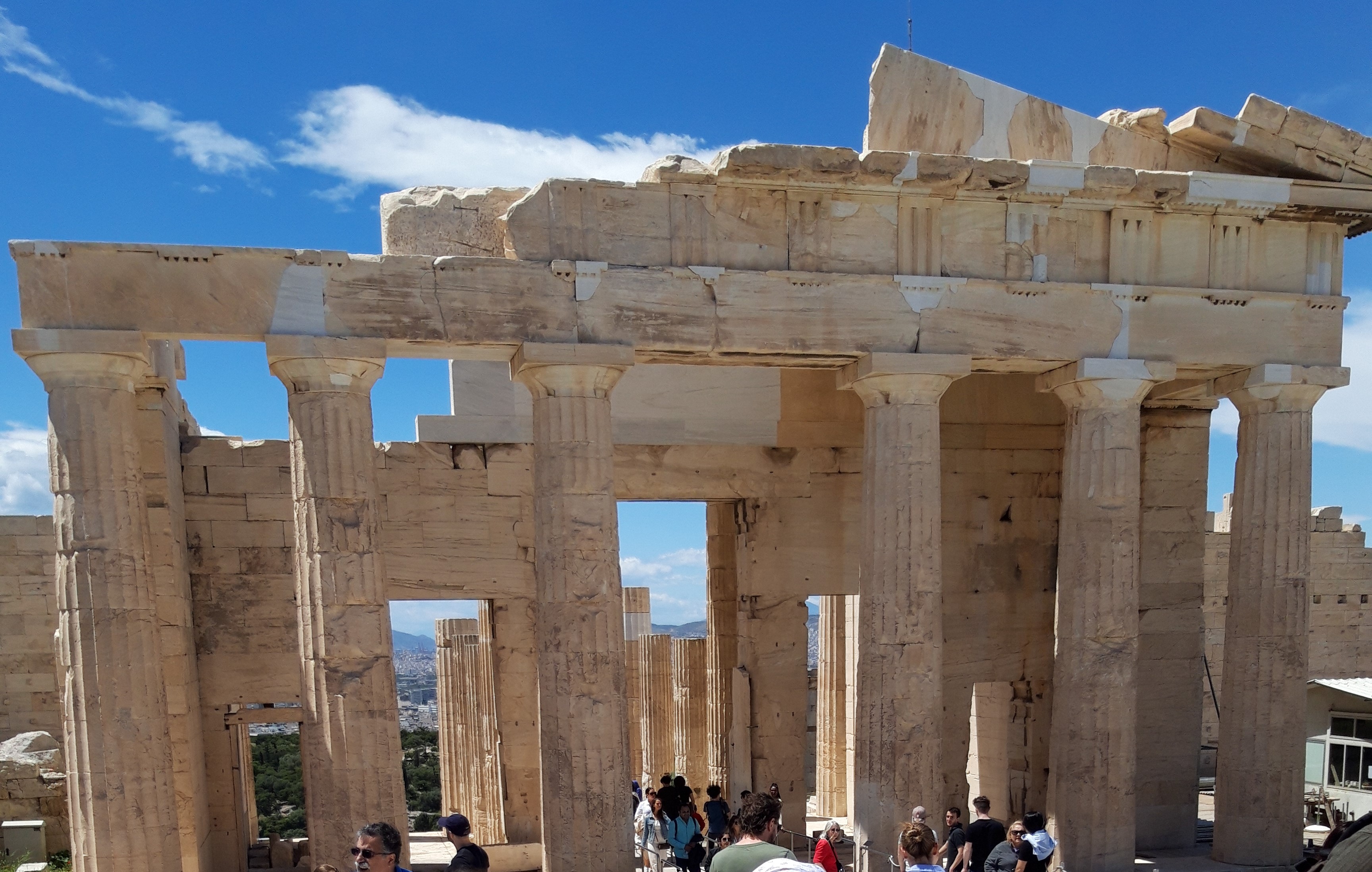 Dar ce contează? Nu știu cum arătau Propileele, pe vremuri, dar sunt frumoase acum. Am rămas pe marginea unei trepte, ca să nu deranjez mareea de turiști, care tot urca și cobora, și am privit în jur. Nu-mi mai venea să plec. Cred că și vizitatorii din Antichitate trebuie să se fi simțit copleșiți.