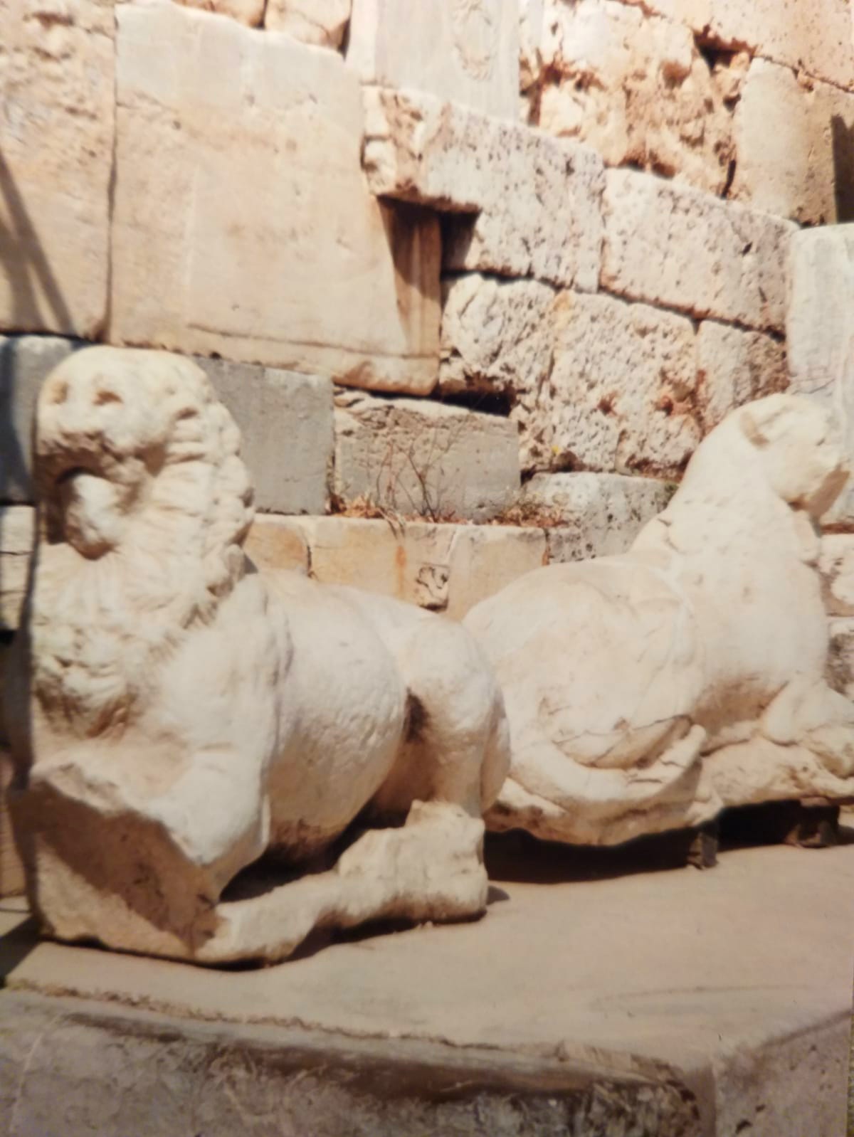 În interiorul porții, rezemați de zid, pot fi văzuți câtiva lei, sculpturi zoomorfe din marmură. Nu știe nimeni să îi dateze cu siguranță, dar ar putea fi foarte vechi, din epoca arhaică (sec. IX – V î.Hr). Leul era considerat, în Attica, animal funerar (însoțea sufletele decedaților, în lumea de dincolo, și era reprezentat, adesea, în inventarul mormintelor). Nu știu ce anume căutau acești lei străvechi funerari, lângă poarta cea mai nouă din complex, dar poate că și ei au fost refolosiți, ca material de construcție, la un moment dat.