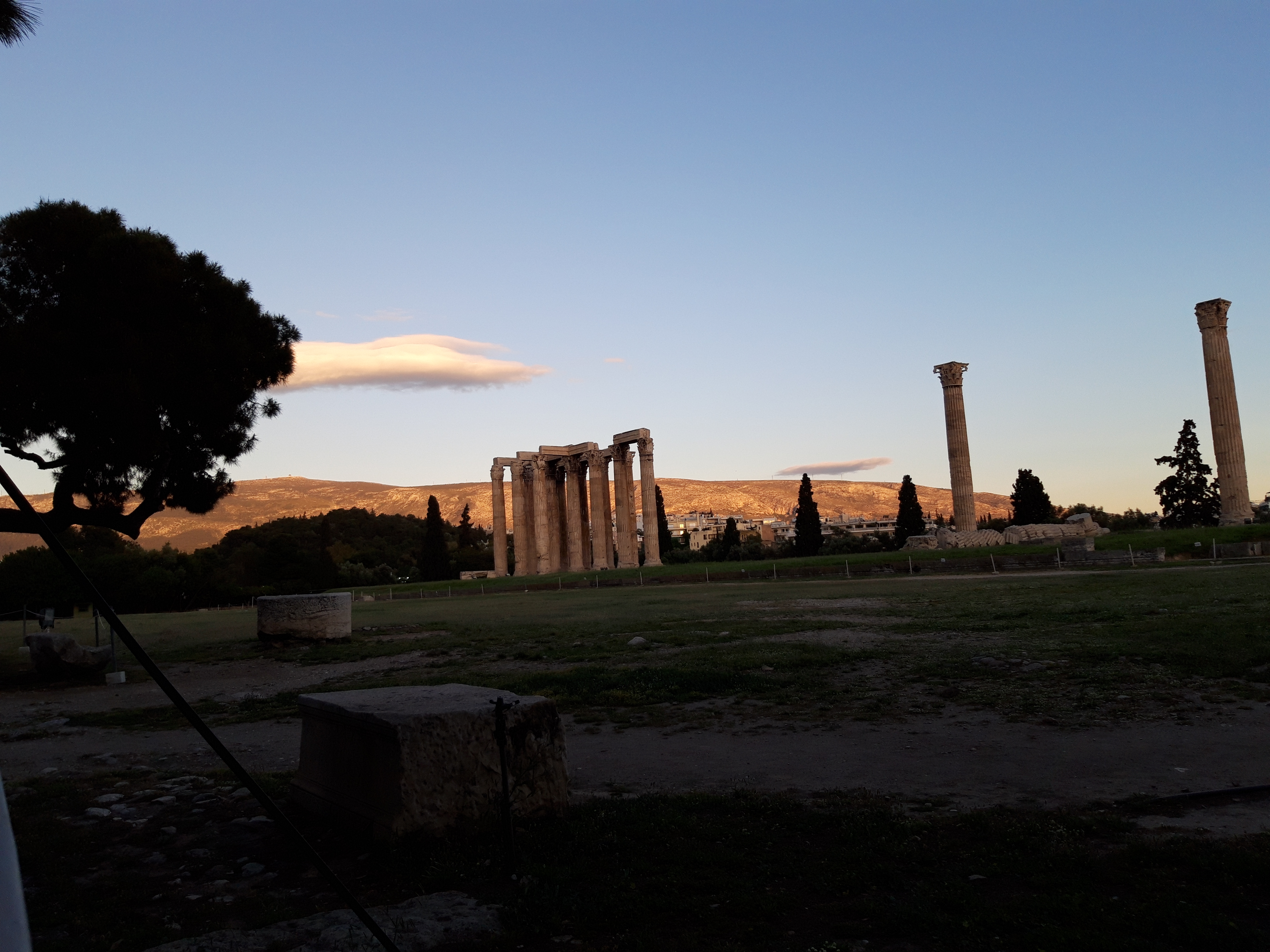 După Parthenon și Erehteion, nu credeam că puteam să mai vedem, la capitolul ruine, ceva ce ar fi putut să ne impresioneze din cale afară, dar iată că, la doar trei străzi mai încolo, am dat de Templul lui Zeus Olimpianul, un sanctuar atât de mare, încât cetățenii s-au răsculat și l-au dat jos pe conducătorul care începuse să îl clădească, tiranul Pisistrate (sec. VI î.Hr.), fiindcă prăpădise prea mult din banii publici pentru construcție (astfel, templul făcându-se indirect responsabil de instaurarea democrației ateniene). Abia după 600 ani, a fost terminat, din cauză că nimeni nu avea suficiente fonduri pentru așa un gigant de clădire. Povestea aceasta o aflasem pe Acropole, trăgând cu urechea la ce istorisea ghidul unui grup organizat, pe lângă care am trecut… și recunosc că m-a amuzat.