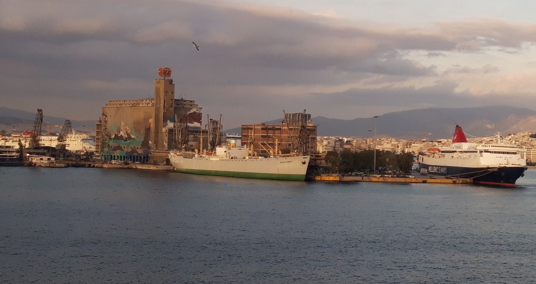 Am luat-o pe Odos Peiraios, drumul cel mai scurt: o șosea ce urmează traseul zidurilor antice care legau Atena de Pireu. Am trecut întâi prin cartierele industriale Petralona și Rendis, pe care un ghid turistic franțuzesc, cumpărat de tata, în anii ’80, le numea de-a dreptul „sinistre”. Nu erau chiar cele mai drăguțe cartiere cu putință, dar nici îngrozitoare nu mi s-au părut; banale, mai degrabă (ce să-i faci, cartea fusese scrisă într-o vreme în care lumea nu se prea omora cu corectitudinea politică). În scurt timp, am ieșit din Atena și ne-am pomenit într-o câmpie foarte plată, punctată, pe alocuri, de fel și chip de silozuri și antrepozite. Pe lângă noi, în sens invers, tot treceau, pe șosea, TIR-uri cât toate zilele; erau încărcate, probabil, cu marfă adusă de vapoarele sosite în port – un semn de intensă activitate economică.